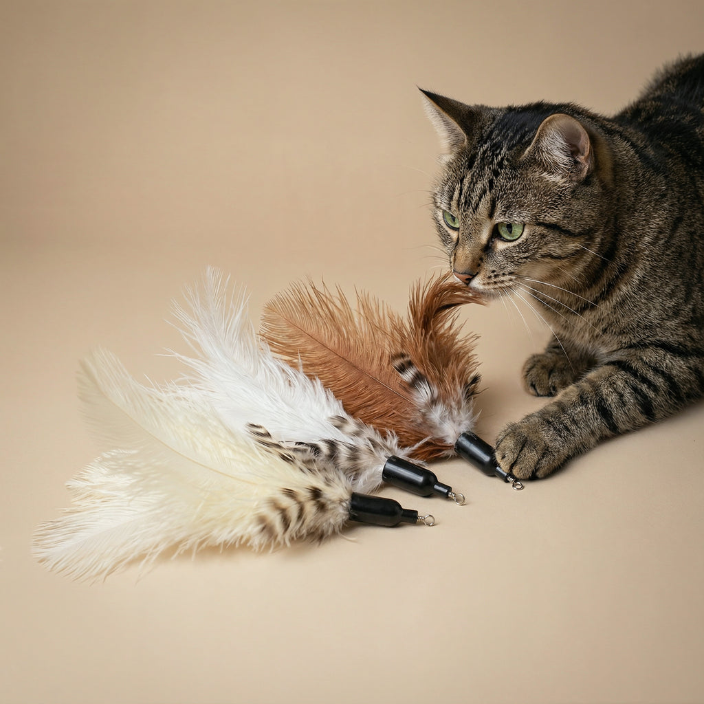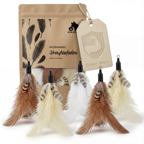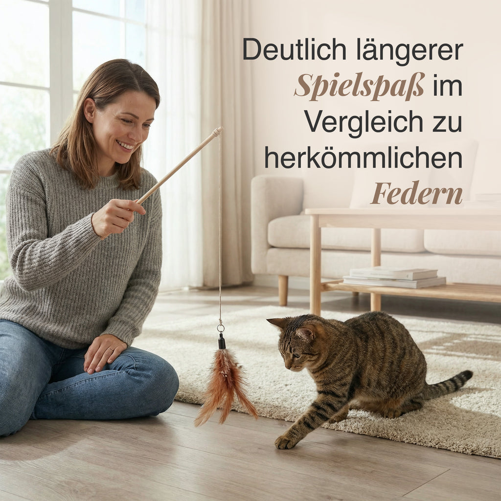 Straußenfedern bewegen sich anders als jedes Kunstprodukt: leicht, unvorhersehbar, reaktiv. Diese natürliche Dynamik hält deine Katze fokussiert und körperlich aktiv.