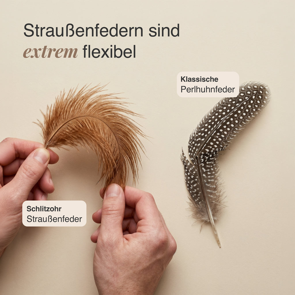 Echte Straußenfedern, natürliche Farben, durchdachte Verpackung – vier Eigenschaften, die den Unterschied machen.